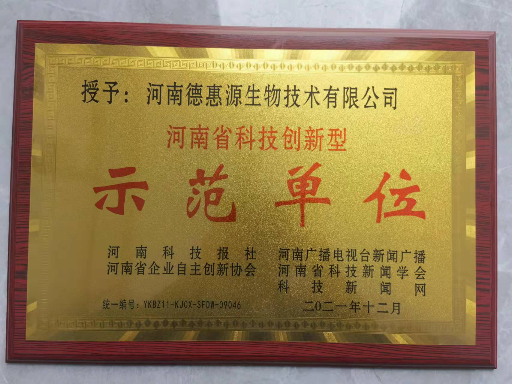 過去的一年是奮斗的一年,河南德惠源生物技術(shù)有限公司也收獲了屬于自己的榮譽(yù)。憑借專業(yè)的研發(fā)隊(duì)伍,雄厚的技術(shù)實(shí)力,持續(xù)的創(chuàng)新能力,科學(xué)的企業(yè)管理,被順利地認(rèn)定為科技創(chuàng)新示范單位。