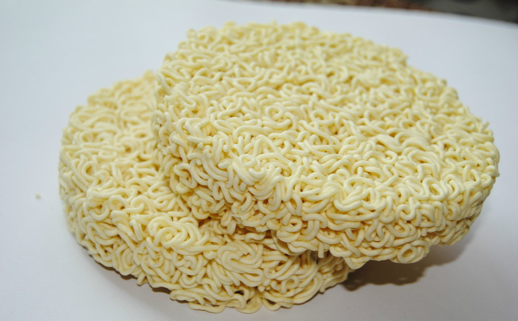 制面工藝對(duì)方便面的光滑與爽口性也有一定的影響,主要是因?yàn)槊鏃l的糊化度不高引起的,加水量少、面團(tuán)熟化時(shí)間不夠,蒸面機(jī)運(yùn)行速度快和蒸氣流量不足,油炸工藝不合理,產(chǎn)品含油率高或油溫太高,破壞了面條內(nèi)部的結(jié)構(gòu)、面條復(fù)水后吃起來(lái)爽口性較差。方便面煮后食用也可以提高爽口性。圓形面條比方形面條的爽口性要好。油炸前淋清水,改善沖泡復(fù)水性能,提高面條的口感。